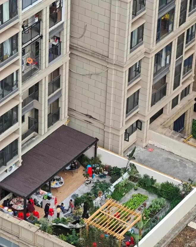 相同之处,一楼的院子和低层的露台,都是归一楼或是低层的住户独享,别人用不了。