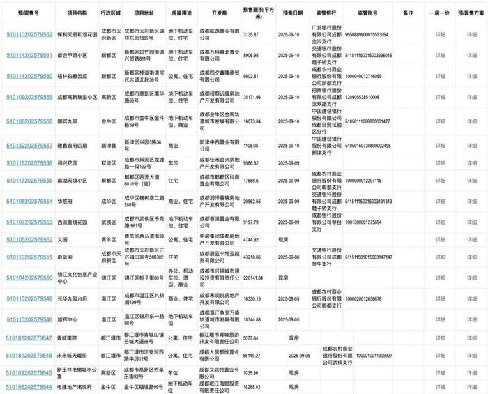 本周大成都范围内,共有12个包含住宅的项目取得预售证,另有7个车位/商业项目预售。
